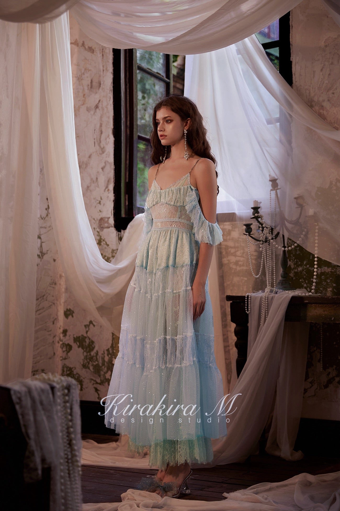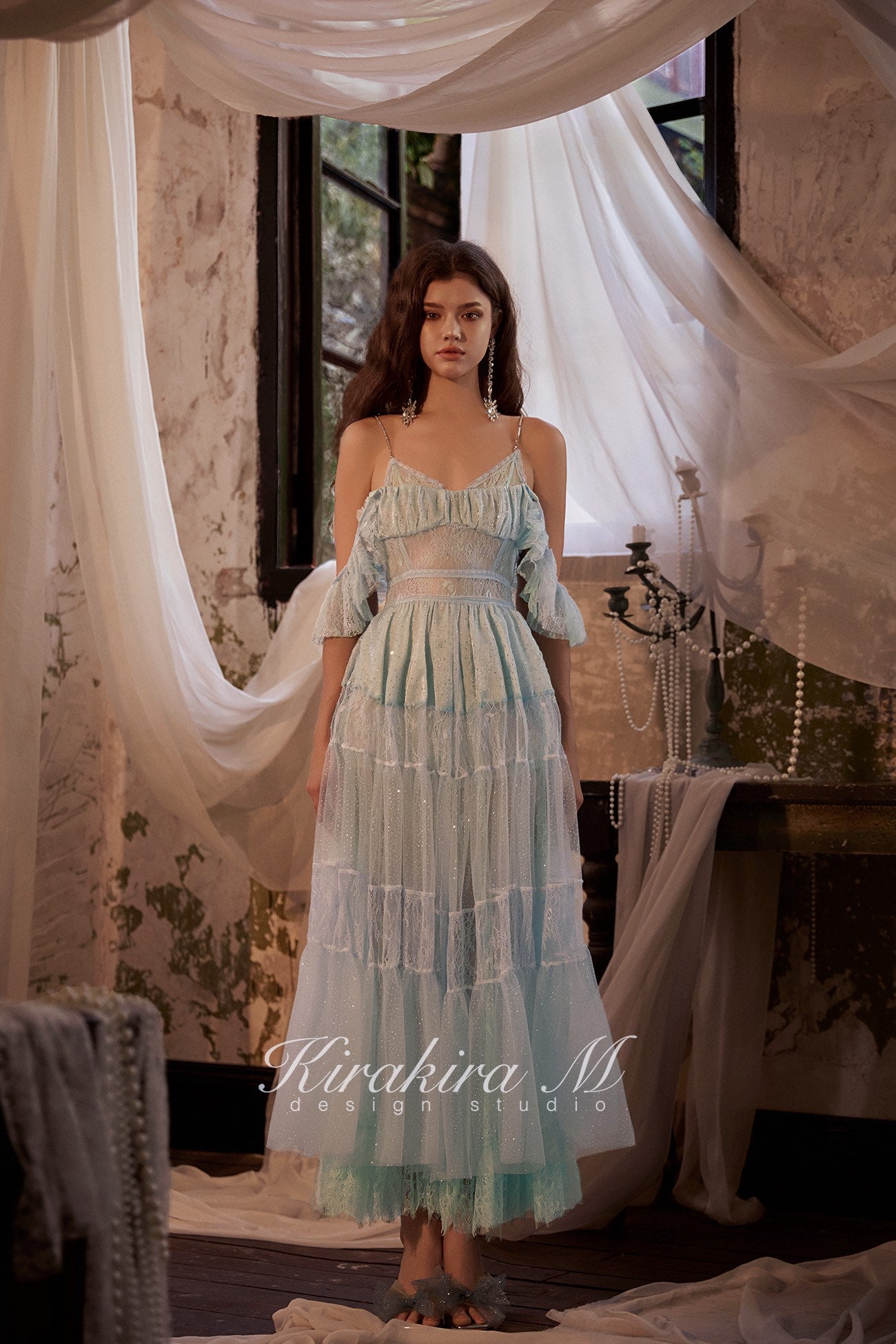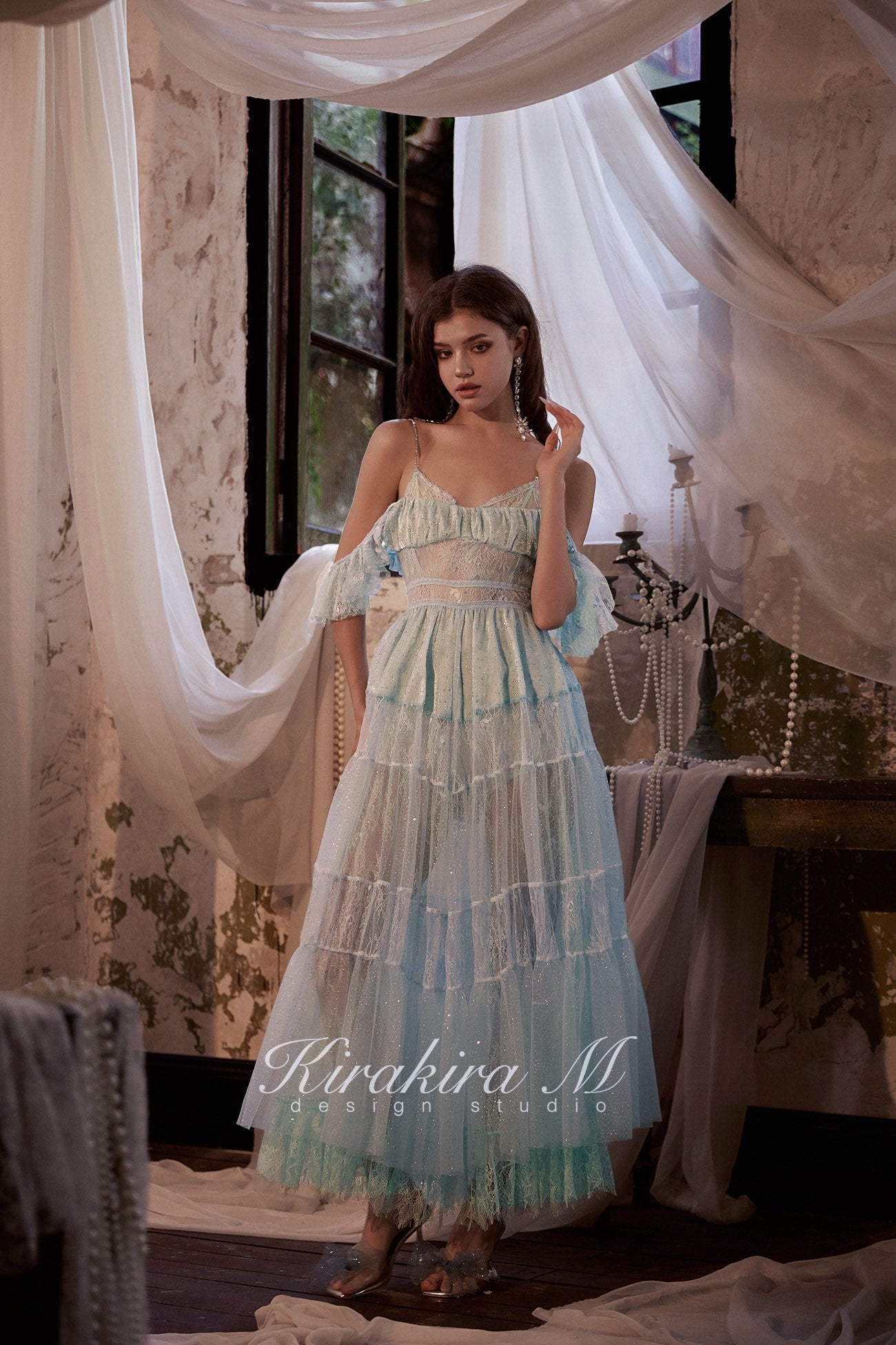 Kirakira.M Rhinestone Embellished Lace Layered Dress(with pants)