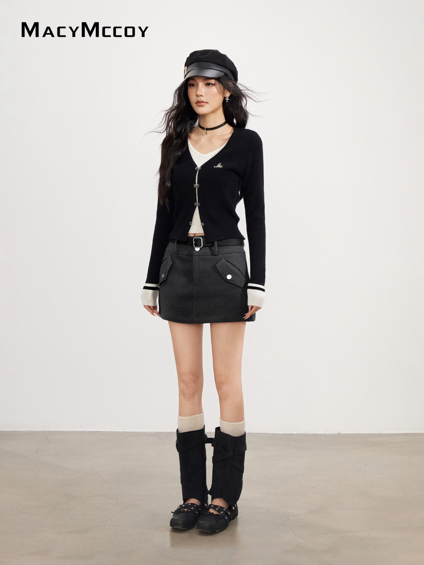 MacyMccoy MMC2025171 Fake two V-neck knitted sweater