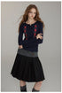 VIA PITTI V24DS249 Button patchwork pleated skirt(2color)