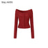 VIA PITTI VIADK618 Off shoulder round neck two in one short twisted flower sweater