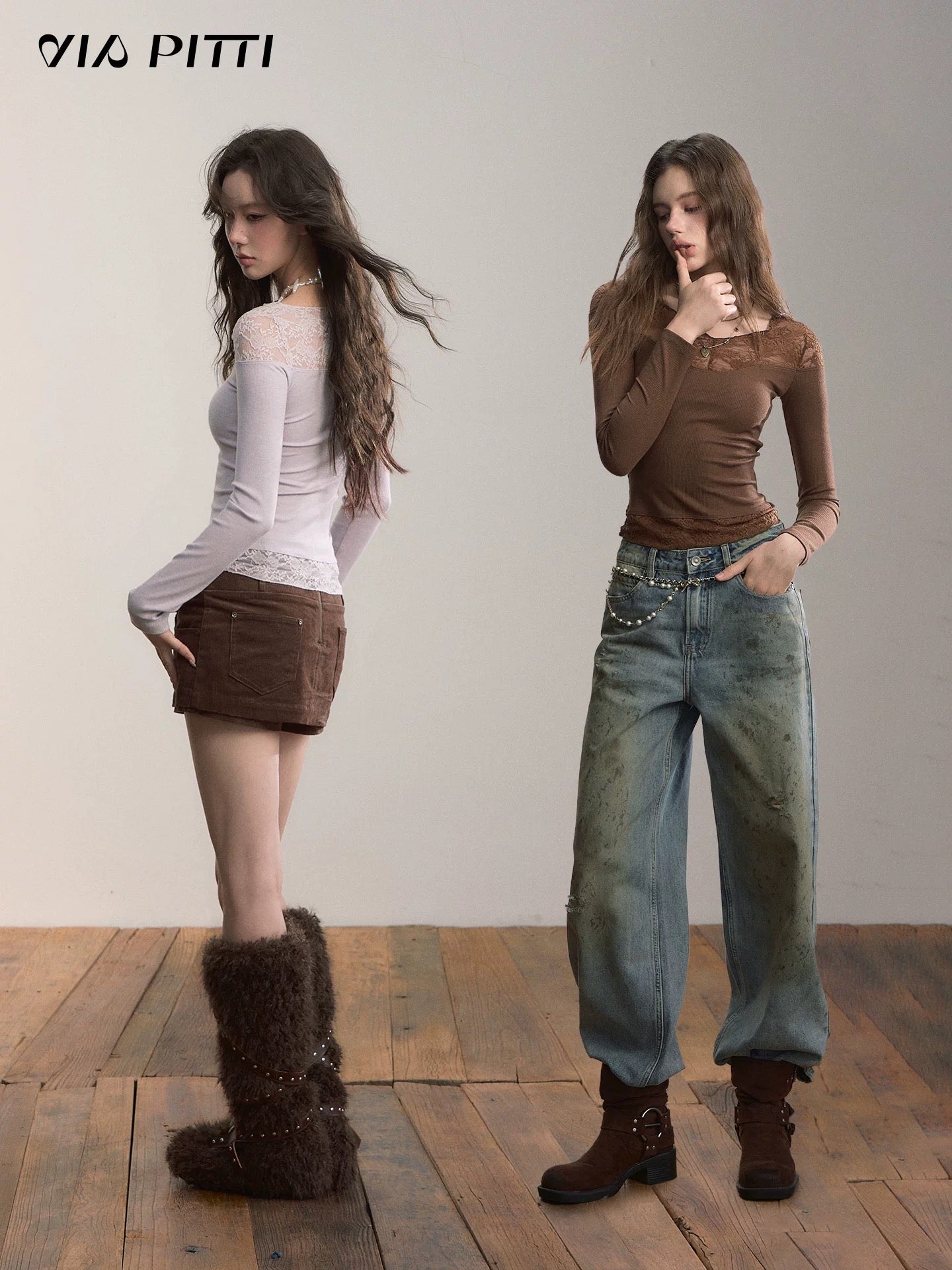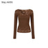 VIA PITTI VIADTP601 Splicing lace V-neck knit sweater