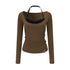 VIA PITTI VIADTP751 Lace patchwork leather edge contrasting long sleeved T